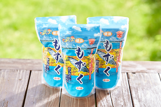ご家族でたくさん食べたい方に応じて作りました。チャック式で冷蔵保存にも便利。チャック式のパックとなっており、開封してもチャックを閉めれば期限内までは冷蔵保存ができ安心です。もずく本来のうまみ、食感(歯ごたえ)および、栄養素をそこなわないよう生産工程でも充分配慮しております。